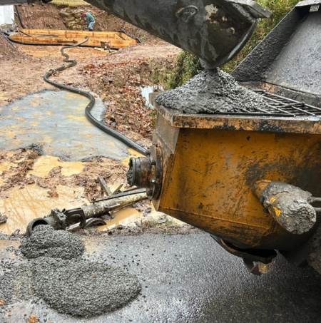 Cleanup: We show up to your job site with a clean pump, and we like to leave the job site with a clean pump. When it comes to pumping concrete, we appreciate when the customer and contractor is prepared with a designated washout place. If you are placing concrete on a new construction site there are typically plenty of convenient places to washout the pump. If on the other hand, if the work takes place in an existing residential subdivision and there are no bare patches of ground to washout on, then a larger kiddie pool works well to capture the washout materials from the concrete pump. Basically there is about two wheelbarrows of concrete that do not discharge from the pump and must be dumped through the hatch in the bottom of the pump there on site. TCB Concrete Pumping requires the customer to make the appropriate accommodations to capture the washout and to dispose of it. Also, click on the image below to see how we clean out the hoses: